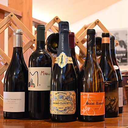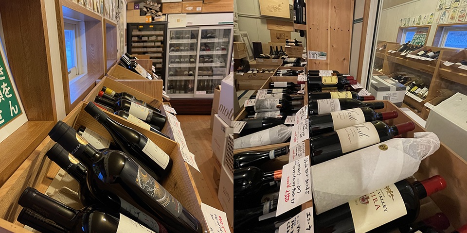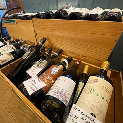 セラーで管理された約2,000本の在庫の中から、お好みのワインをおすすめいたします。(夫婦ともにソムリエ資格取得) 県内産トヨシマファーム(由利本荘市矢島町)のワインも取り扱い。