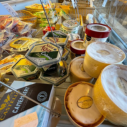 フランス・イタリア等のヨーロッパ産を中心に常時40~70種の品揃え。ご希望のチーズがあれば取り寄せいたします。